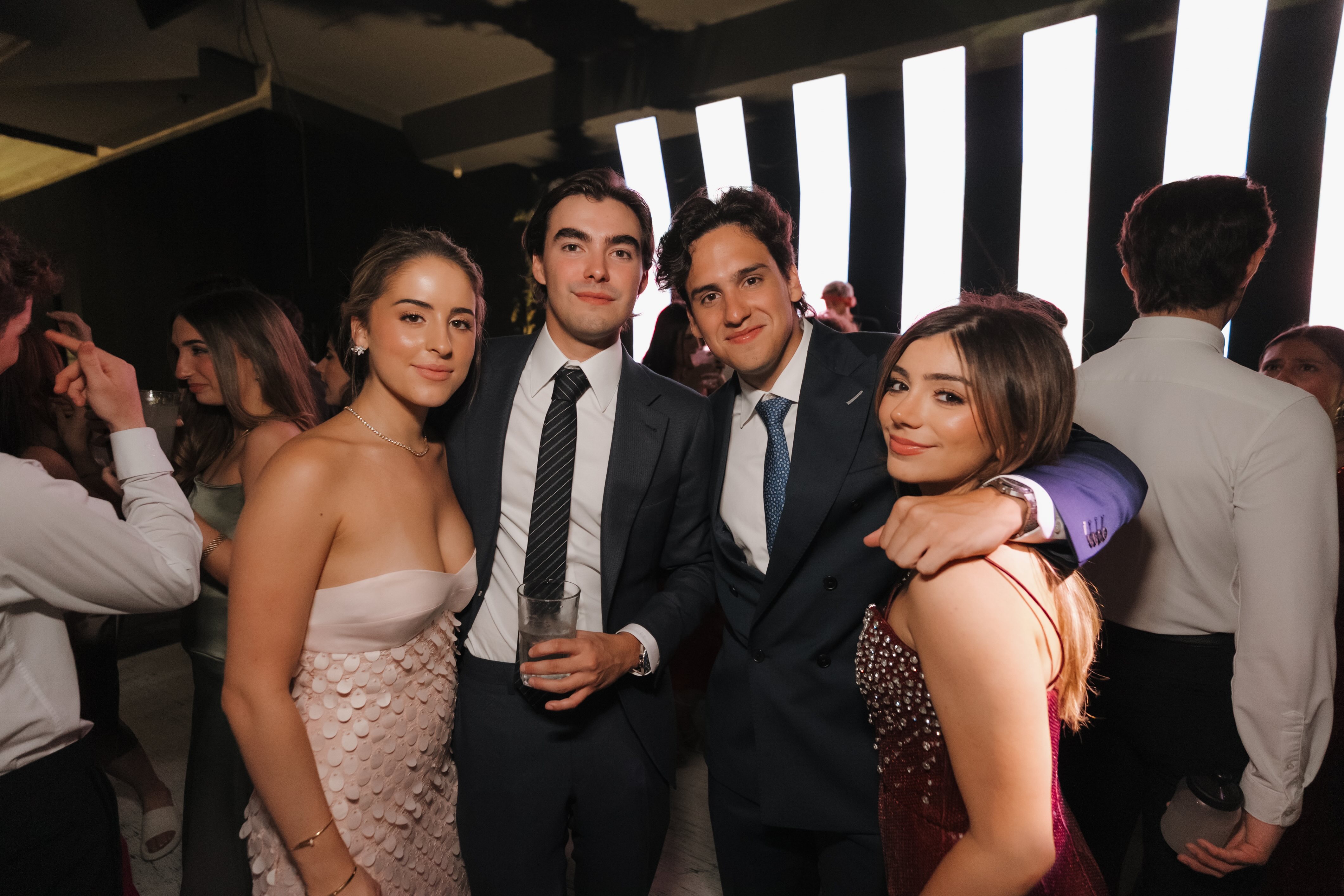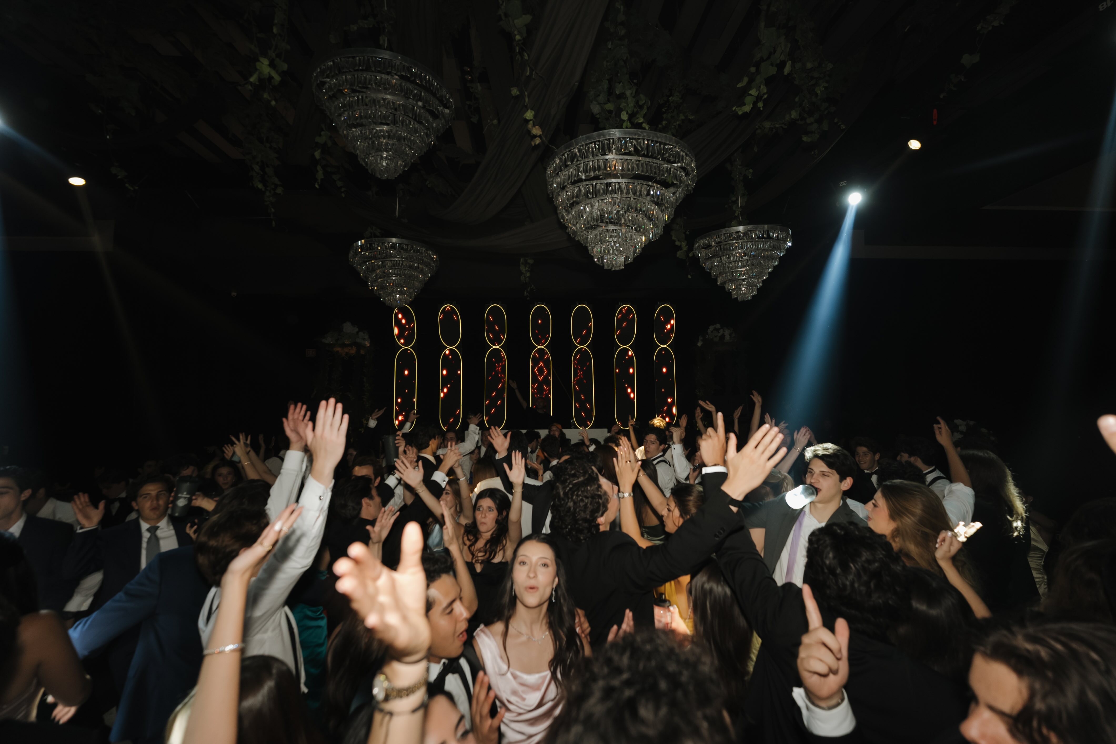 ASFM celebrated its graduation night in a setting where modern architecture met dramatic lighting and elevated design. Suspended chandeliers, cascading greenery, and a luminous stage created a refined atmosphere that felt both intimate and monumental. Every table, every spotlight, and every structural detail framed the beginning of a milestone defined by growth, ambition, and shared history.