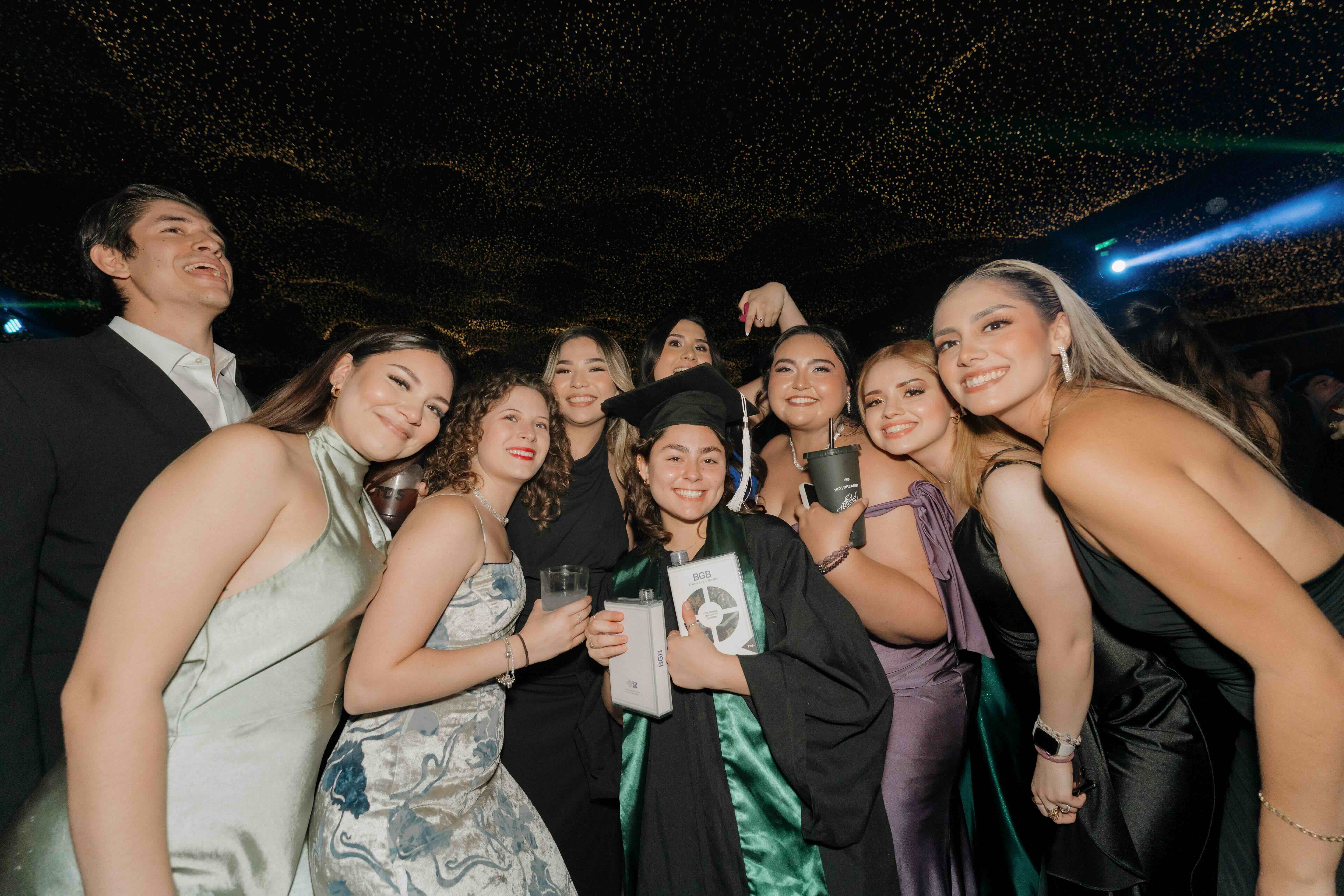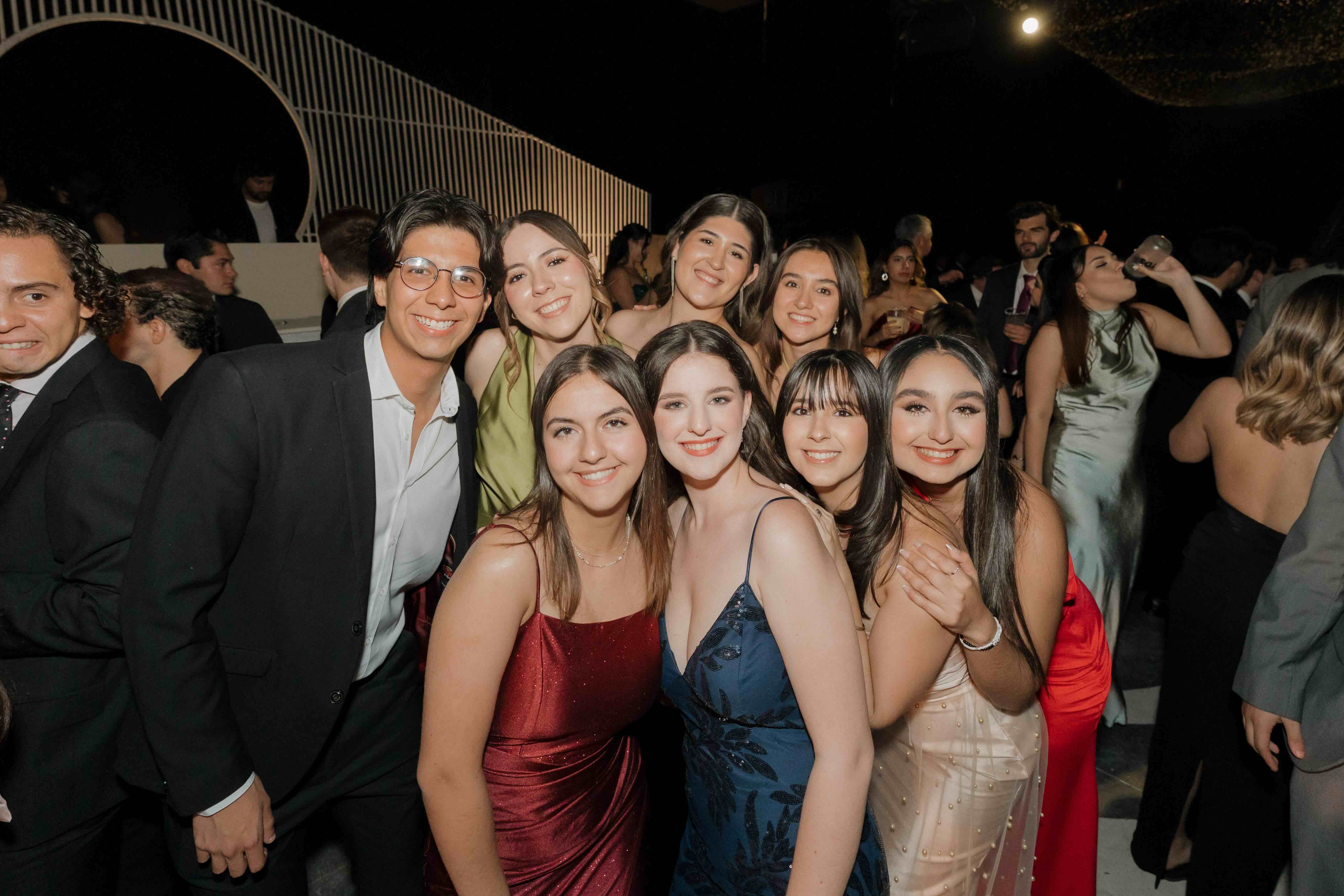 Beneath a ceiling of countless warm lights, the venue felt expansive yet intimate at the same time. Long banquet tables, dark tones, and a sculptural stage created a setting that balanced restraint with scale. Every seat, every glass, and every line of the space was placed with intention, allowing the design to frame the celebration without overpowering it.